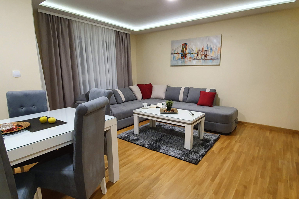 Apartmani se nalaze u strogom centru Zlatibora, u blizini mnogih turističkih sadržaja, u novoizgrađenom objektu. Opremljeni su novim, modernim nameštajem. Apartmani se sastoje od dnevnog boravka sa trpezarijom i kuhinjom, odvojene spavaće sobe, kupatila i terase. Dostupan je besplatan, bežični internet, kao i kablovska TV. Kuhinja je opremljena priborom i kompletnim posuđem, kao i šporetom i frižderom. Gostima su na raspolaganju čisti peškiri i posteljina, kao i fen za sušenje kose. Obezbedjen je privatni parking bez doplate, a moguće je koristiti i garažu.